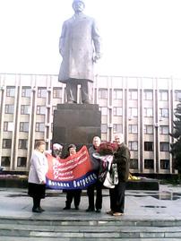 В ознаменование 69 годовщины Великой Октябрьской социалистической революции Прогрессивные социалисты г.Славянска Донецкой области возложили цветы вождю мирового пролетариата В.И.Ленину.