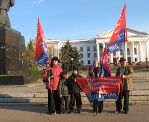 95-ую годовщину Великого Октября прогрессивные социалисты г. Краматорск отметили возложением цветов к памятнику основателя социалистического государства, вождю мирового пролетариата В.И. Ленину. В нынешнее время празднование годовщины Октября имеет особое значение, когда власть захватила криминальная буржуазия, лишившая простых граждан на труд, на отдых, на достойную старость.