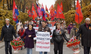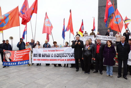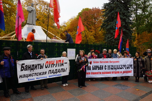 Со вступительным словом на митинге выступила Наталия Витренко. Бессменный лидер ПСПУ, доктор экономических наук, народный депутат Украины 2 и 3 созывов Наталия Михайловна Витренко вынесла аргументированный и беспощадный приговор фашистским пособникам – террористам из ОУН–УПА, руки которых обагрены кровью двух миллионов жертв.