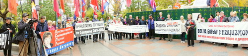 Выступившие осудили нынешний украинский режим, повинный в преступном прославлении украинских коллаборационистов, превращении Украины в колонию ЕС.