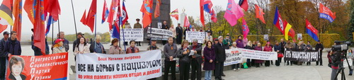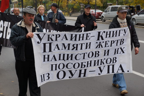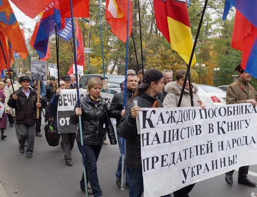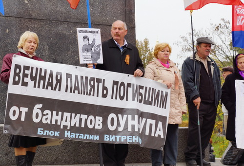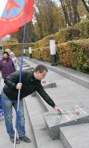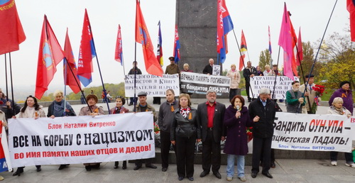 Мы – наследники героев–освободителей нашей Великой Родины – Союза Советских социалистических республик и всей Европы от коричневой чумы нацизма, сегодня, 14 октября 2013 года, у могилы Неизвестного солдата в Киеве, чтим память жертв, павших от рук пособников гитлеровских нацистов из ОУН–УПА.