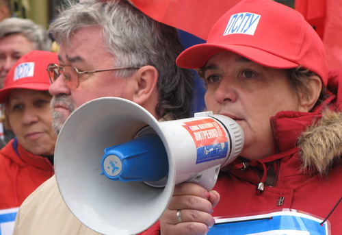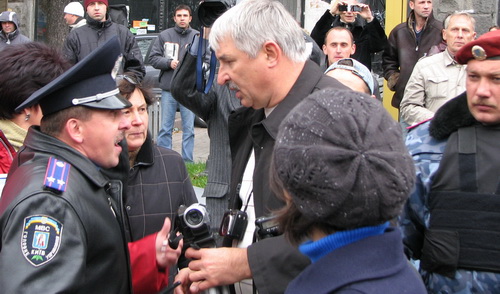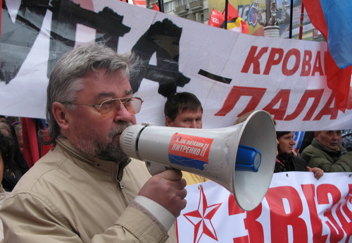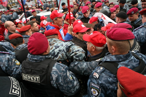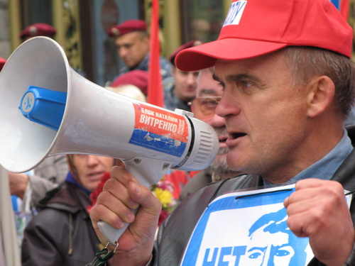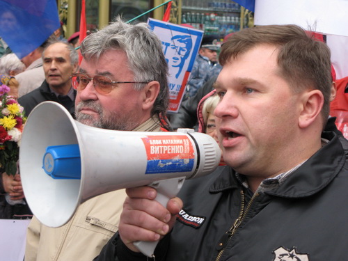 Однако оранжевому профашистскому отродью, узурпировавшему власть на Украине, чужды понятия демократии, свободы слова, свободы и права граждан на проведение мирных митингов и демонстраций. Без решения суда в отношении акции наших партий высшие милицейские и СБУшные чины бросили на начавших собираться на мероприятие граждан несколько сотен вооружённых до зубов спецназовцев "Беркута". Растаптывая Конституцию, попирая общепринятые принципы европейской демократии, стервятники Луценко попытались сорвать акцию прогрессивных социалистов, отсекли машины озвучивания, силой не пропустили к месту сбора несколько десятков наших соратников, откровенно угрожали, в том числе и заместителю председателя ПСПУ, председателю Конфедерация труда Украины, народному депутату Украины нескольких созывов Владимиру Марченко.