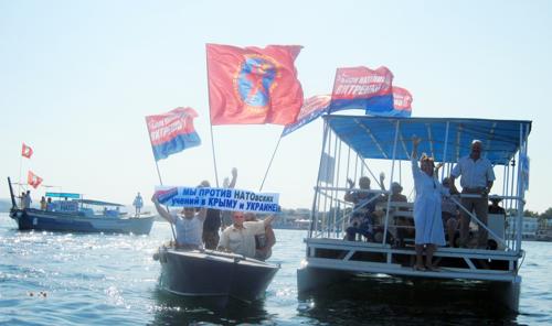 Сегодня, 23 июля, в день завершения НАТОвских учений в Украине, прогрессивные социалисты Севастополя, во главе с лидером партии Наталией Витренко вышли на катерах в море, чтобы проверить отсутствие НАТОвских оккупантов в Ахтиарской и прилегающих бухтах Севастополя. И убедились, что НАТОвских кораблей у берегов Севастополя нет.