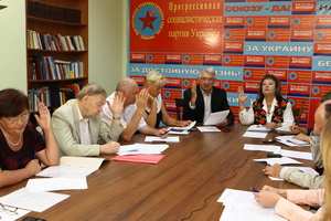 15 сентября с.г. в Киеве состоялось заседание Президиума ЦК ПСПУ. В нем приняли участие все члены Президиума, а также: председатель КПК ПСПУ Л.Дробязина, секретарь Киевской городской организации ПСПУ А.Попов, зам. председателя Рабочей партии Украины (марксистско-ленинской) В.Буткалюк, секретарь Киевской городской организации Партии «Киевская Русь» В.Силенко и др.