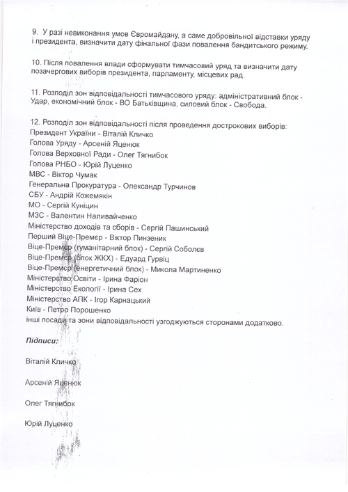 Во-вторых, с сервера скачали несколько документов о сотрудничестве оппозиционных партий. В частности, договор о стратегическом партнерстве между оппозиционерами, дополнение к которому содержит список распределения государственных должностей в случае отстранения от власти Виктора Януковича.