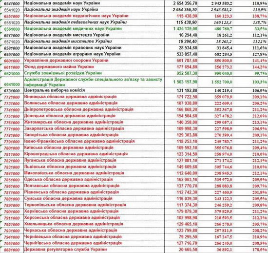 Кстати, больше, чем истерика Вовы Парасюка, меня повеселила бюджетная роспись доходов по областям в проекте бюджета-2017. Анализ сделал еврооптимист Даниил Монин, который, судя по его постам на Facebook, почему-то становится все более пессимистичным. Так вот – глаз-алмаз у этого оптимиста-пессимиста. Замечательную табличку он нарыл. Объясняю, что обозначают цифры: первая – это план на 2016 год, вторая – предложено в бюджете 2017-го, третья графа – рост доходов областей в процентах.