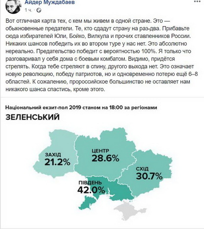 Ведь если бы не было "зеленого", он мог проголосовать за синего, или бело-синего, или желто-синего, в крайнем случае за бордового. Ну, это если совсем нет кандидатов. Даже Рыдованова и Юрия Тимошенко. А так ему предоставили возможность, как написал бежавший из России журналист Аркадий Бабченко, "про**ать Украину".