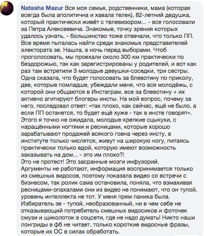 Ну а что делать, если есть "великі сумніви у тверезості мислення частини населення нашої країни"? Странно, что их всех не признали недееспособными по этой причине еще до голосования. Преступная халатность медицины во главе с и.о. Ульяной Супрун. Не тем бабенка занималась.