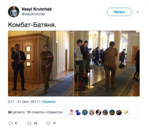 В конце – несколько слов о моде. Законодательницами моды на этой неделе были, разумеется, "деффачки". Соцсети всколыхнул новый образ Надежды Савченко, которая появилась в Верховной Раде и поразила публику брутальным комбинезоном цвета хаки и армейскими берцами. За что ее уже прозвали "комбат-батяня".