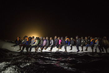Лодка с мигрантами недалеко от берегов Ливии. 1 августа 2017