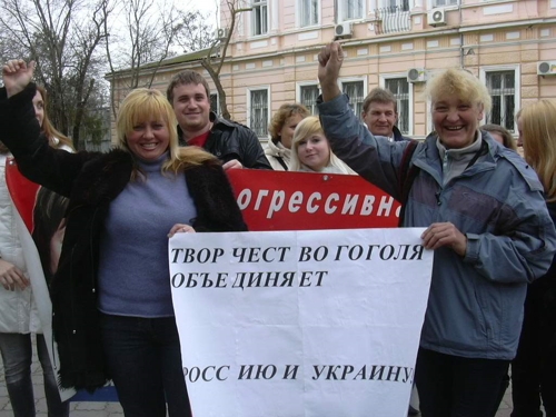 Ведущая митинга школьный учитель украинского языка и литературы Оксана Шаталова, открывая акцию, объявила ее целью демонстрацию всему миру неразрывности двух культур России и Украины на примере таких классиков как Гоголь. "Сегодня мы пришли сюда заявить, что настоящие ценители творчества Николая Гоголя никогда не станут умалять его заслуги и причислять великого писателя отдельно к украинскому или русскому наследию. Тем более, менять значения слов при переводе. Да нужно ли славянам переводить произведения писателя с русского на украинский язык? Ведь даже при точном переводе может измениться стиль так называемая мелодика гоголевского письма. Если классик одни свои произведения предпочитал писать на русском, а другие на украинском языке, значит, именно колоритом той или иной речи он и хотел подчеркнуть характеры своих героев. Почему же кто-то решил, что он вправе править классика", - возмутилась учитель.
