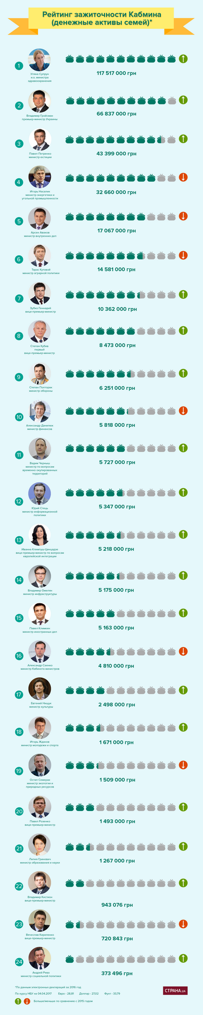 "Страна" посчитала денежные активы семей чиновников за прошлый год и составили рейтинг зажиточности Кабмина.