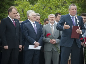 В своем выступлении Рогозин, в частности, заявил: "На мой взгляд, память о войне - это единственное условие, которое сдерживает новую угрозу. Только мы ослабляем свое ощущение своей истории. Как только мы начинаем забывать о тех гектолитрах крови, которые были пролиты в сражениях за Родину, сразу всякая мразь начинает вылезать из подвала. Примеров тому много очень. Это то, что происходит в Прибалтике, когда еще 20 лет тому назад после распада Советского союза стали проходить всевозможные митинги и шествия ветеранов пронемецких, профашистских организаций, которые даже приветствовались властями прибалтийских государств. Но когда вдруг подобные мероприятия стали происходить и рядом с нами - на Украине, многие считали, что это некие рецидивы, некие частные проявления ультранационализма. Но сейчас-то мы видим, к чему это все привело. Это привело на самом деле к фашистскому путчу в Киеве - матери городов русских. Сегодня ?Градом", другими системами залпового огня уничтожается, сравнивается с землей мирное население, которое не имеет ничего общего с войной, а лишь только заявило о своем праве говорить на русском языке, поддерживать русскую культуру, и за это их пытаются убить. И кто приходит на помощь нацистам? Всевозможные мерзавцы со всего мира приезжают, создают свои фашистские интербригады. И, конечно, НАТО, которое тут как тут и которое теперь заявляет о вине Новороссии, Российской Федерации, Приднестровья и грозит нам приближением своей военной инфраструктуры. Пусть приблизится! Чем ближе они к нам, тем ближе мы к ним. Никому не советую, всем ?дурным охотникам" не советую приближаться к берлоге русского медведя. Он может вылезти из берлоги и надерет кое-что кое-кому. Поэтому в этот день, в день 70-летия Великой Победы в Ясско-Кишиневской операции, победы, которая действительно вошла во все учебники как одна из самых удачных, самых смелых, самых дерзких военных операций Советского союза, я хочу сказать вам, дорогие мои приднестровцы: никогда не снимайте своей ноги с плиты, которая удерживает нацизм. Держите плотно эту ногу, не давайте ни одной щели, чтобы мразь снова вылезала на свет, чтобы она начинала размножаться. Держите мир на своей земле, стойко отстаивайте его, помните каждую каплю крови, которая была пролита вашими дедами и бабушками для того, чтобы не пролить новую кровь. Слава Великой победе и вечная память тем, которые заплатили своей жизнью за наш с вами мирный день!"