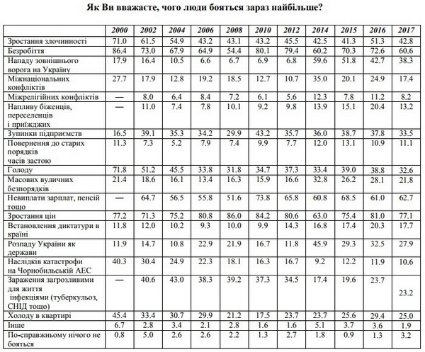 В 2017 году почти 80 процентов граждан Украины сказали. что больше всего они боятся роста цен.
