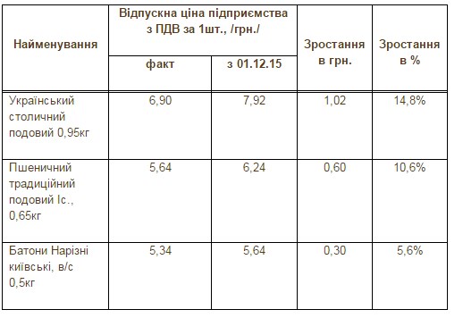 Публичное акционерное общество «Киевхлеб» объявило о поднятии отпускных цен на основные сорта своей продукции с 1 декабря 2015 года. Об этом говорится в сообщении пресс-службы «Киевхлеб», передают Украинские новости.