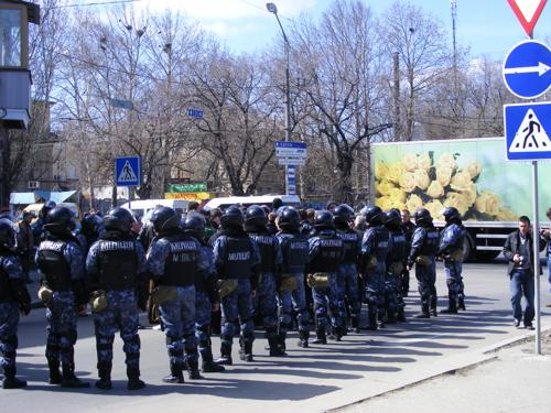 Тягнибоковцы, поняв, что им не удастся даже вступить на эту площадь, решили переместить свою акцию на территорию перед горсоветом – в трехстах метрах от митинга, пройдя туда маленькими группками по переулкам.