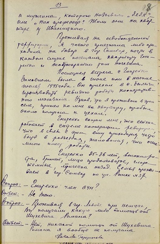 В документах есть и протокол допроса жены Шухевича – Натальи, которая рассказала НКВД о неизвестных широкой публике эпизодах своей жизни с командующим УПА. Во время допроса она признается, что семья Шухевича получала паек от нацистов: