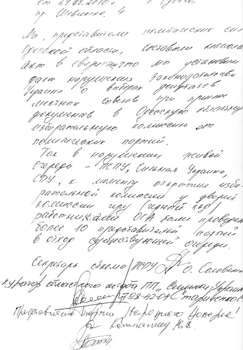 З огляду на вищезазначене вимагаємо у відповідності до Вашої компетенції та повноважень зареєструвати Одеську обласну організацію Прогресивної соціалістичної партії України під номером один, що буде відповідати принципу законності та справедливості.
