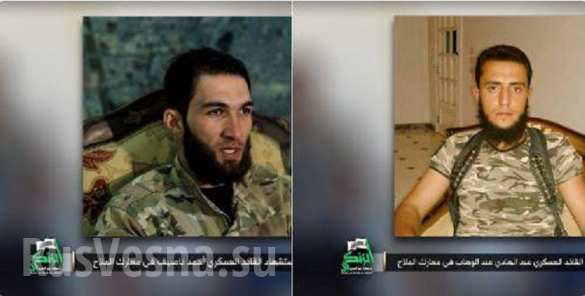 В понедельник официальные СМИ бандформирования сообщили о гибели двух своих главарей в результате наступления Сирийской Армии на северо-западе Алеппо в Сирии.
