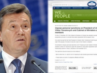Самое большое количество набрала петиция с призывом ввести персональные санкции в отношении президента Украины В.Януковича и его правительства, зарегистрированная сразу же после решения украинского правительства о паузе на пути подписания Соглашения об ассоциации с ЕС – почти 120 тыс. В частности речь идет о запрете на въезд в США В.Януковичу и правительству Украины, а также о замораживании их банковских счетов.