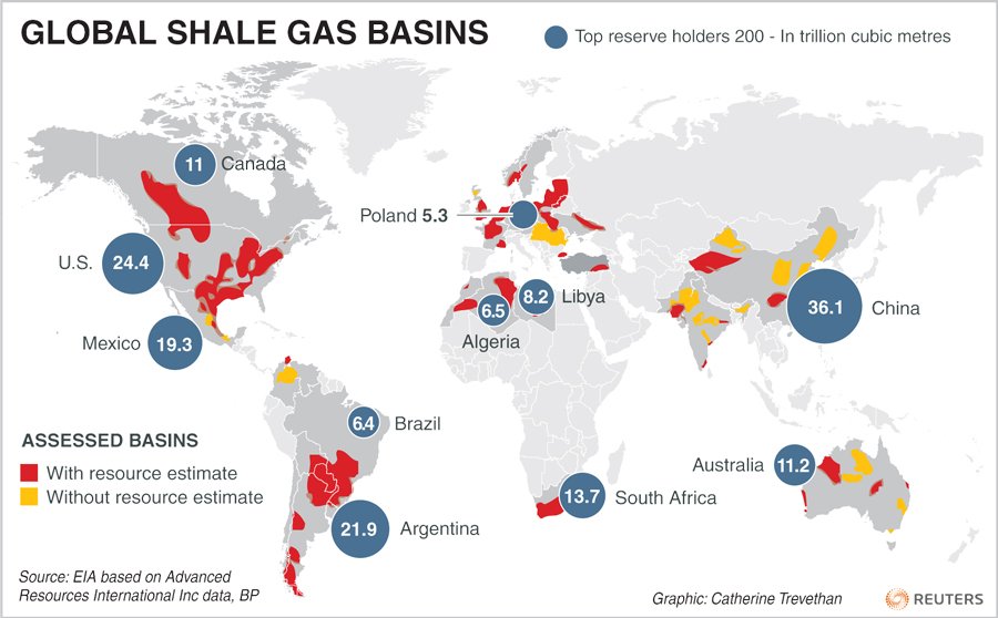 Первоначально для Вашингтона все шло как нельзя идеально. Компания Devon Energy первой в мире пробурила горизонтальную скважину для промышленной добычи сланцевого газа после того, как было установлено, что США обладает внушительными запасами этого сырья (24-25 трлн. куб.м., из которых около 15% являются извлекаемыми).