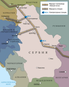 В октябре прошлого года "Газпром" объявил о подписании соглашения с Сербией о строительстве 415-километрового участка трубопровода, который будет стоить 1.7 миллиардов евро (2.3 миллиардов долларов).