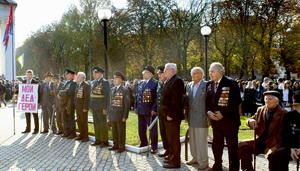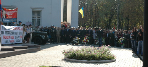 На этот праздник, на священную могилу выпустили "оранжевого" депутата Верховной Рады Украины, который называет себя оппозиционером. Он стоя на костях погибших начал рассказывать к какой фракции принадлежит. Но ведь роменчане и так это знают. Ведь фракция "Батькивщина" ещё недавно обещала на примере Шухевича и Бандеры воспитывать молодёжь. Горе–депутат начал рассказывать о политических репрессиях в Украине. Блеф! В Ромнах все видят, как нарушая все законы, на здании Дома культуры болтается флаг их партии, у них самая многочисленная фракция в горсовете, депутаты занимают в городе руководящие бюджетные посты начиная с заведующей отдела внутренней политики до руководства горисполкома. Благополучно работают все директора школ, которые перед выборами президента Украины публично вступили в БЮТ. А он цинично выступает в этот святой для роменчан день и агитирует вступать в Европейский союз! Конечно же, прогрессисты во всеуслышание высказали свою позицию и презрение этому депутату. Сергей Гаврась назвал его козлом и сказал: "Будь ты проклят!"