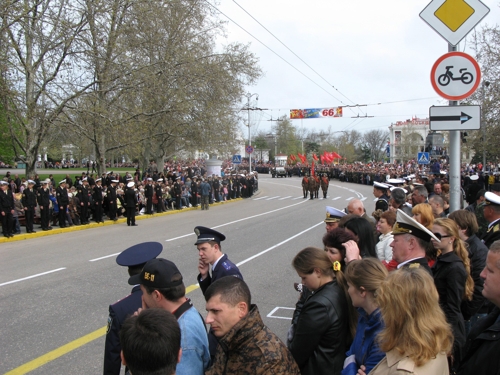 В Севастополе 9 мая достоялось традиционное празднование Дня Победы советского народа в Великой Отечественной войне и Дня освобождения города от немецко-фашистских захватчиков. Весь город и масса гостей Севастополя вышли на улицы с цветами, флажками, шарами. И, обязательно, с георгиевскими ленточками. Состоялся совместный парад российского и украинского флотов.