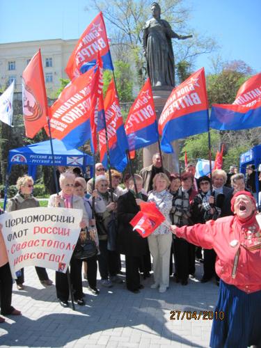 27 апреля, через час после ратификации Верховной Радой Украины Договора о продлении срока пребывания Черноморского флота Российской Федерации на территории Украины, возле памятника Екатерине II в Севастополе состоялся многочисленный митинг в поддержку флота России. В митинге приняли участие активисты Блока Наталии Витренко "Народная оппозиция", партии "Русский блок", общественных организаций "Дети войны Севастополя", "Дар жизни" и Российской общины Севастополя. "Черноморский флот - гарант дружбы и мира между Украиной и Россией", "За дружбу с Россией и братство народов!", "Флот и Севастополь неразделимы!", "Черноморский флот России - гарант стабильности в регионе", "Оранжоиды! Руки прочь от ЧФ России!". Плакаты и транспаранты с таким содержанием в руках у собравшихся.