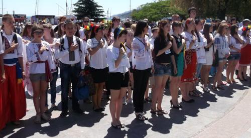 Перед началом мероприятия прозвучал только украинский гимн, а гимн АР Крым организаторы сознательно проигнорировали.
