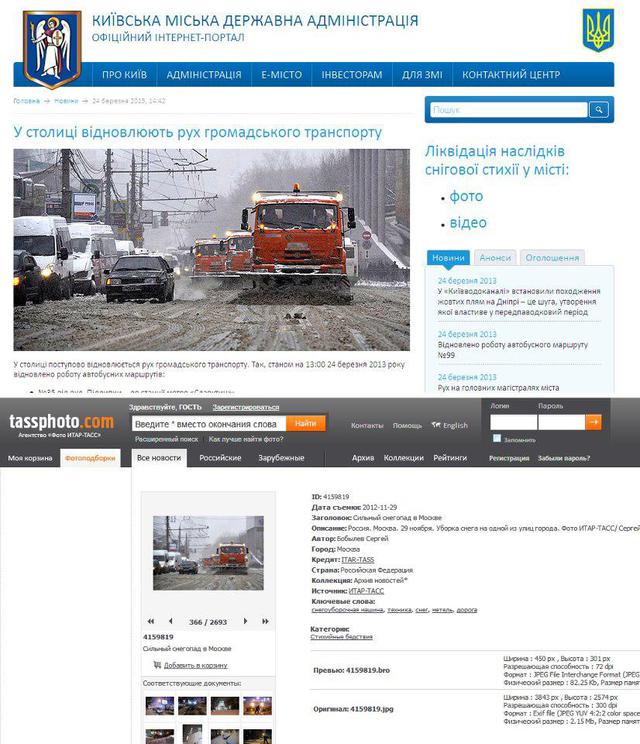 Новость об успешной борьбе со снегом в Киеве на сайте КГГА проиллюстрировали ворованной фотографией агенства ИТАР-ТАСС из Москвы.
