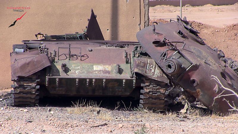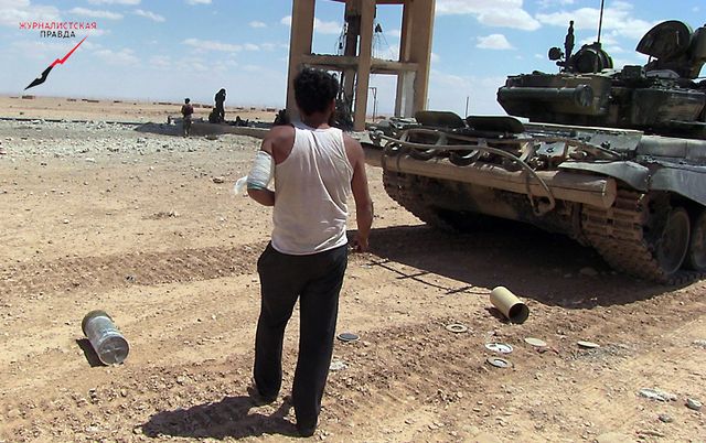 Уничтоженный танк боевиков, который они, в свою очередь, ранее захватили у сирийской армии