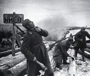 Но, как говорят свидомые галичане, «мэншэ з тым». Все также знали, что «восточный вал» Гитлера на западном берегу Днепра рухнул под мощными ударами Красной, повторяю для спичрайтеров главковерха и специально для Вятровича, КРАСНОЙ, если хотите, рабоче-крестьянской (и так она еще тогда величалась) армии, которая была армией Советского Союза и сражалась, естественно, за него же. То есть за свободу и независимость СССР.