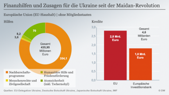 Причем очень трудно отделаться от предчувствия, что европейцы готовы ударить по официальному Киеву еще и «евриком» и сейчас готовят к этому немецкое общественное мнение. В первую очередь – немецкое. Вариант критической статьи на немецком языке сопровождался таблицей о вкладе Евросоюза в поддержку «евромайдана». В статье на украинском языке этой таблицы не было, а на русский язык ее (статью) вообще не переводили. Такая вот «тройная бухгалтерия» получилась, ложь во спасение хорошего настроения «еврохероев»...