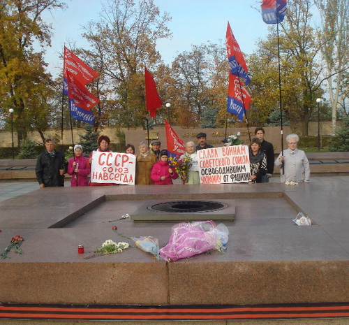 28 октября в Николаеве состоялась акция памяти о тех, кто погиб, защищая нашу землю от коричневой чумы в те далёкие военные годы. Главным атрибутом акции было знамя Победы - Советского Союза, под которым победили фашизм во время Великой Отечественной войны.