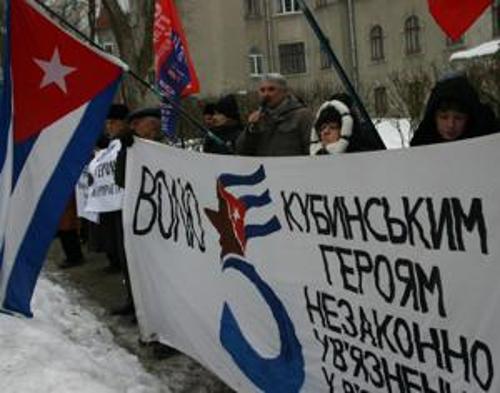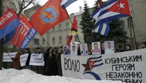 "Нельзя считать демократией кровавую бойню, творимую США в Ираке и Афганистане, многолетнюю экономическую блокаду Кубы, угрозы военной агрессии против Ирана, Венесуэлы. Нельзя призывать к демократии и экспортировать демократию стране, которая огнём и мечом воюет за мировое господство. Нужно забыть властям США термин "справедливость", так как американские суды принимают политические, а не правовые решения как это произошло с незаконным осуждением пятерых кубинских героев, предотвративших теракт против Кубы"- заявил Владимир Марченко. Он призвал власти США немедленно освободить Герардо Эрнандеса Нордеро, Рамона Лабанино Саласара, Антонио Герреро Родригеса, Фернандо Гонсалеса Льорта, Рене Гонсалеса Сехверерта и снять экономическую блокаду свободолюбивой Кубы.