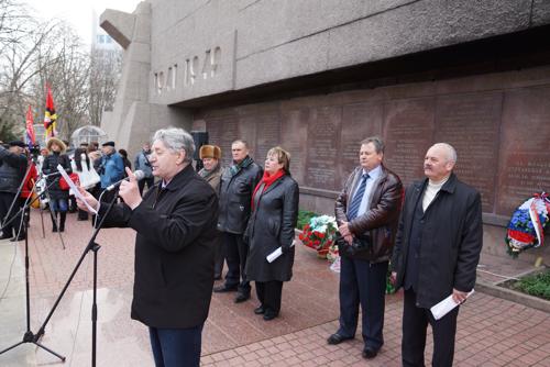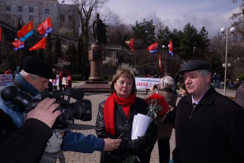 В 12.00 к памятнику основательнице города Екатерине Великой легли цветы от Виктора Алкниса, Наталии Витренко, Владимира Марченко. Это те политики, которые всю свою жизнь посвятили борьбе за союзное государство, за Советскую власть.