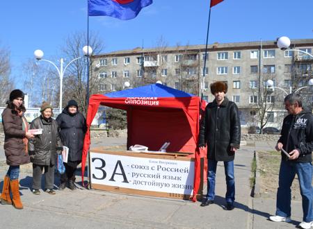 17.03.2013 в г. Новая Каховка Херсонской области была проведена акция в поддержу волеизъявления граждан, высказанного 22 года назад на Всесоюзном и Всеукраинском референдумах. В тот день подавляющая часть граждан Украины высказалась за создание нового Союза. Преступная власть все эти годы отказывается выполнять волю народа и тянет страну в ЕС и НАТО.