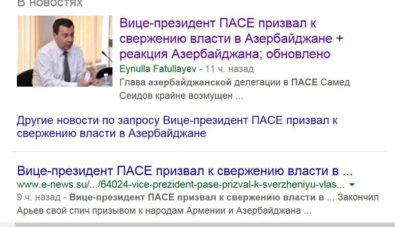 Сегодня азербайджанские СМИ вышли с сенсационнами заголовками: "Вице-президент ПАСЕ призвал к свержению власти в Азербайджане".