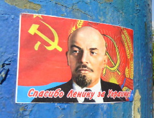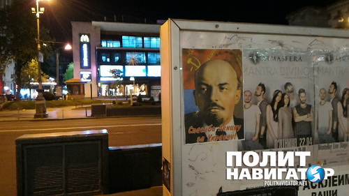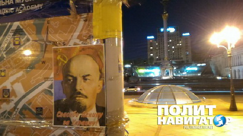 22-ого апреля, в День рождения Владимира Ленина в самом центре Киева, на Майдане, появились граффити и наклейки с изображением вождя мирового пролетариата.