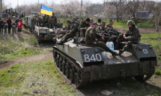 13:50 На северный блокпост, отбитый силами самообороны Славянска, подвозят шины, песок ... для восстановления, так как пост был сожжен с целью дымового прикрытия от прицельной стрельбы снайперов. Все блокпосты вокруг Славянска под контролем самообороны.