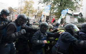 Новое столкновение между протестующими и правоохранителями на улице Грушевского недалеко от Верховной Рады произошло после попытки полицейских вернуть щиты, украденные накануне митингующими у бойцов Нацгвардии. Об этом сообщает пресс-служба Нацполиции вечером в среду, 18 октября.