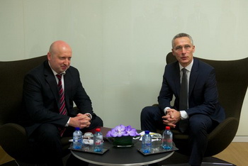 Секретарь Совета национальной безопасности и обороны Украины Александр Турчинов встретился с Генеральным секретарем НАТО Йенсом Столтенбергом в штаб-квартире Альянса в Брюсселе.