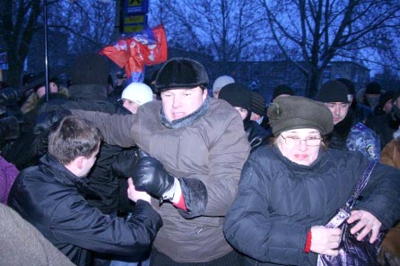 Потом уяснив, что пикет невозможно рассеять и , бютовцы уступили место силовикам, и тут уже доблестные милиционеры взялись за дело.