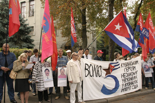 14 сентября на митинг к американскому посольству в Киеве пришли представители Прогрессивной социалистической партии Украины, Партии "Киевская Русь", КПУ, Всеукраинской женской организации "Дар жизни", других общественных организаций. Они потребовали от американских властей немедленного освобождения Героев Кубы. Митингующие гневно осудили террористическую деятельность США, их грубое вмешательство во внутренние дела суверенных государств, позорную политику силой насаждать свой "мировой порядок".
