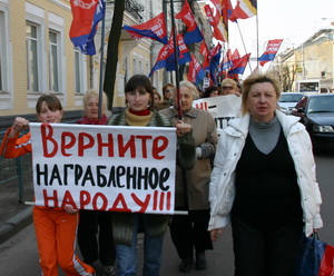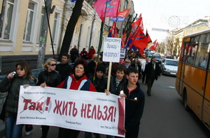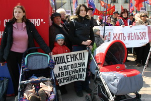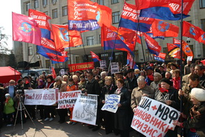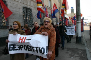 Около 700 протестующих под флагами Блока Наталии Витренко "Народная оппозиция", Прогрессивной социалистической партии Украины, Партии "Киевская Русь", Всеукраинской женской организации "Дар жизни" проследовали к площади Победы и площади Сергея Королева, возле памятника которому состоялся митинг.