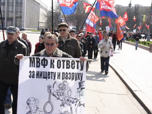 К митингующим прямо из Киева, через радиомост, обратилась лидер прогрессивных социалистов Наталья Витренко, которая в своем выступлении еще раз подчеркнула, что выход из кризиса возможен только при условии присоединения Украины к единому экономическому пространству России и Белоруссии, при условии выхода из ВТО и отказа от реформ по рецептам МВФ.