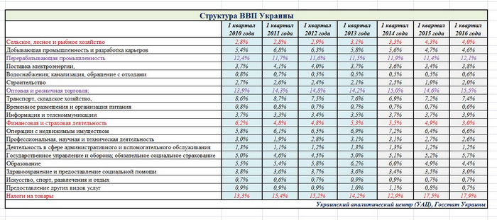 Государственная служба статистики Украины опубликовала развернутые данные о ВВП Украине за 1 квартал 2016 года.