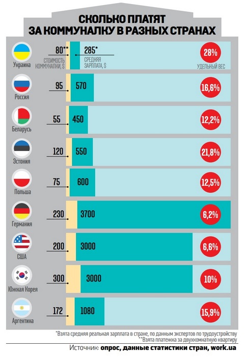 «Они перенимают опыт только в части повышения. Например, во Франции, в связи с падением цен на нефть, стоимость газа для потребителей упала на 24%. У нас этого не произошло, хотя мы покупаем тот же газ. У нас тарифы растут даже тогда, когда мировые цены падают, - говорит экономист Александр Охрименко. - Тарифы - как в Европе, а зарплаты украинцев - как в Африке. В Кабмине считают, что люди где-то найдут мешок с деньгами и понесут в кассу. Но денег у людей нет. Они перечисляют за коммуналку, сколько могут».