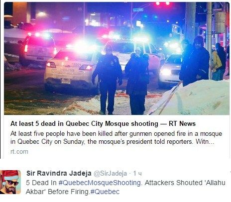 Также отмечается, что свидетели рассказали о том, что терористы имели квебекский акцент и во время нападения кричали "Аллаху акбар!"